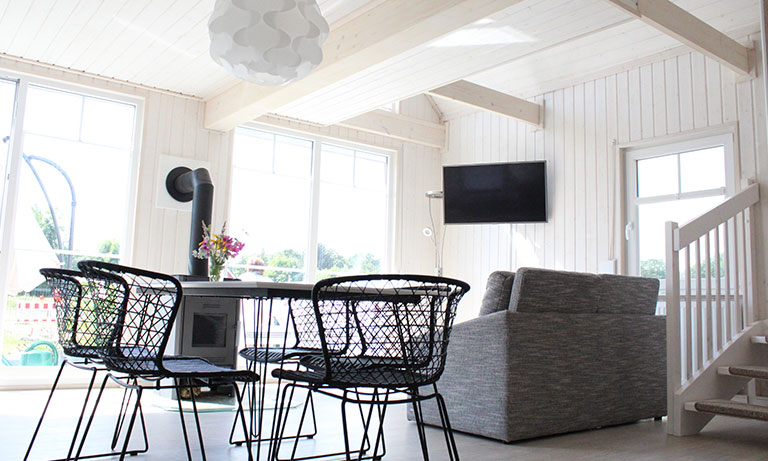 Mieten Sie ein lichtdurchflutetes, geschmackvoll eingerichtetes Ferienhaus mit Kamin, offener Galerie und großer Terrasse.